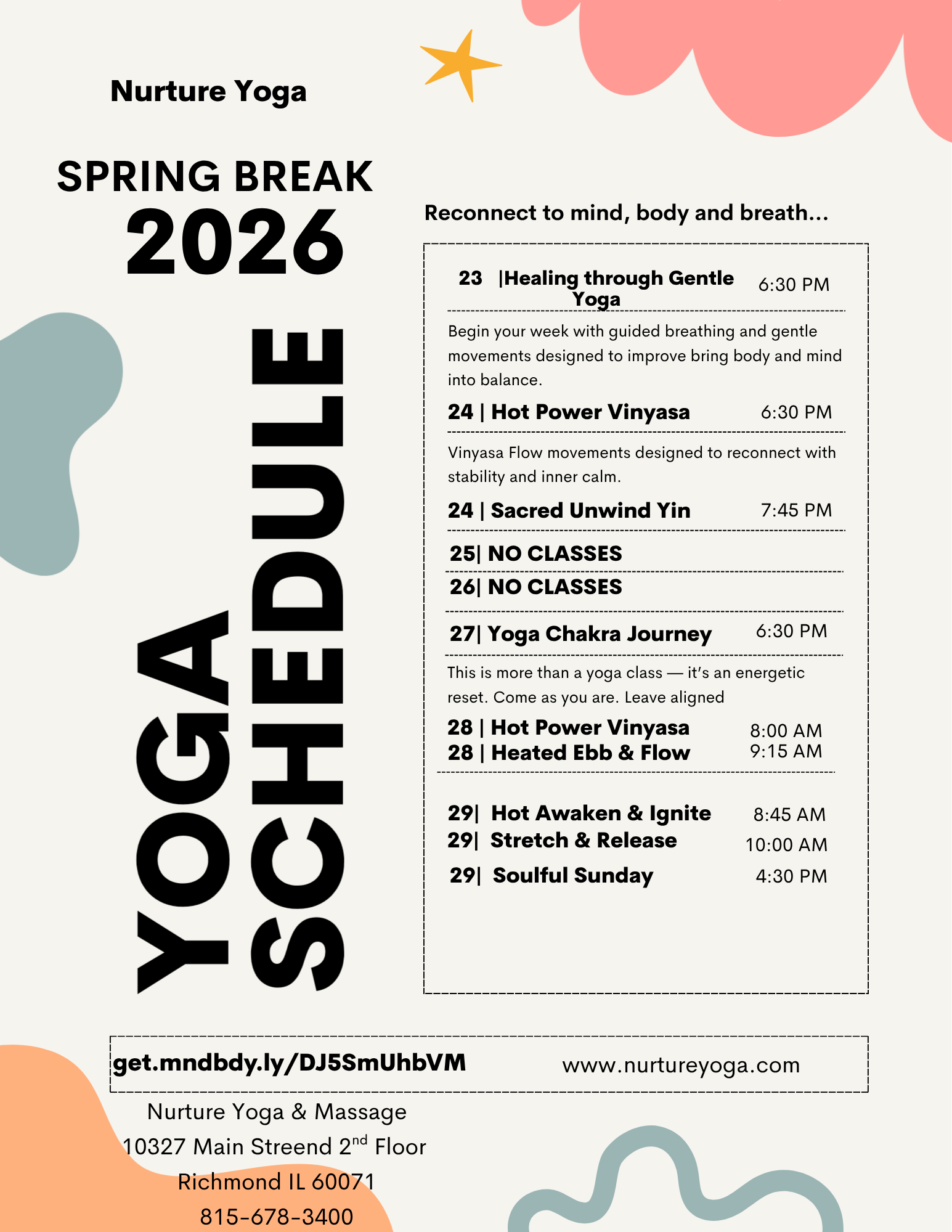 At Nurture Yoga, we are dedicated to nourishing your soul and creating a peaceful space where you can practice, relax, grow stronger, and find balance. For over 14 years, we’ve been proud to serve as a sanctuary in the heart of downtown Richmond, Illinois—a place where individuals come to experience healing, growth, and connection.